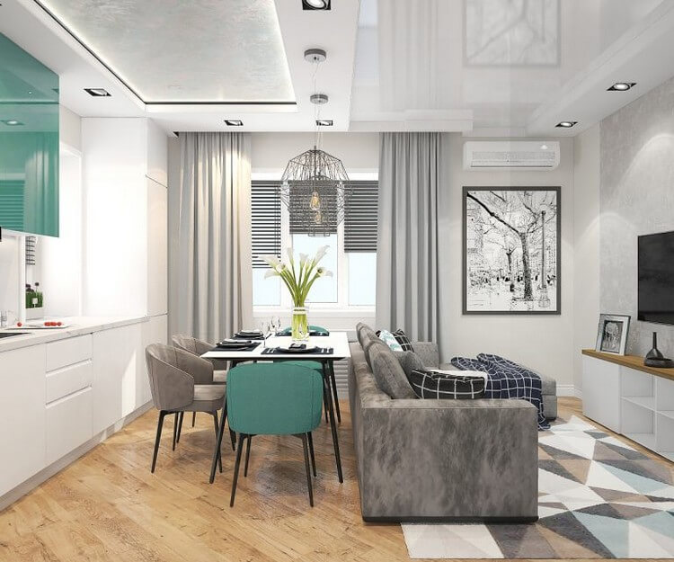 - Sự thống nhất của phong cách. Một loại thiết kế cụ thể được chọn, tương ứng với cả hai phòng kết hợp.