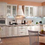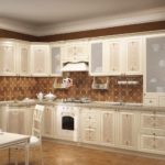 Đặc điểm chính của phong cách này là sử dụng vật liệu tự nhiên hoặc giả chất lượng cao của chúng. Thông thường, để tạo ra một nội thất theo phong cách cổ điển, các mảng cây anh đào, gỗ tuyết tùng và cây sồi và đá tự nhiên, như đá granit hoặc mica lung linh, được sử dụng. Tất nhiên, nếu chúng ta nói về lớp nền kinh tế của một bộ bếp, thì không thể nói về vật liệu tự nhiên, thay vào đó, màng nhựa và gạch được sử dụng. Hãy chú ý đến ánh sáng. Rõ ràng, đồ đạc bằng nhựa thông thường sẽ không phù hợp với phong cách sang trọng này.