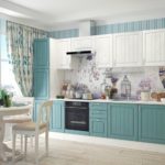 Ngoài ra một phong cách phổ biến để trang trí nhà bếp là Provence. Nó khác với phần còn lại với sự duyên dáng đặc biệt của nó, các họa tiết hoa được dệt hiệu quả vào tổng thể nội thất, đồ nội thất cổ điển với màu sắc tươi sáng, ánh sáng và hàng dệt. Đồng thời, phong cách được coi là đơn giản và giá cả phải chăng.