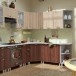 Góc bếp tương ứng yêu cầu các yếu tố góc. Hai loại mô-đun như vậy có sẵn trên thị trường: hình thang và hình chữ L.