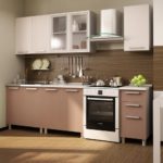 Nhà bếp mô-đun từ loại giá ngân sách được tạo thành từ các yếu tố của các cấu hình khác nhau, nhưng tương tự trong phong cách. Tai nghe tuyến tính bao gồm các tủ quen thuộc với tất cả chúng ta với ngăn kéo, kệ và cửa. Các mô-đun có thể hoàn toàn khác nhau về chiều cao và chiều rộng. Trong một tủ, hai, ba, và thậm chí bốn ngăn kéo có thể được đặt, chồng lên nhau. Một sự kết hợp của một ngăn kéo duy nhất trên đầu và một cánh cửa, nơi che giấu các kệ, đã phổ biến mười năm trước, bây giờ ít phổ biến hơn trong các cửa hàng. Nhưng nếu bạn muốn, bạn vẫn có thể tìm thấy một tùy chọn tương tự.