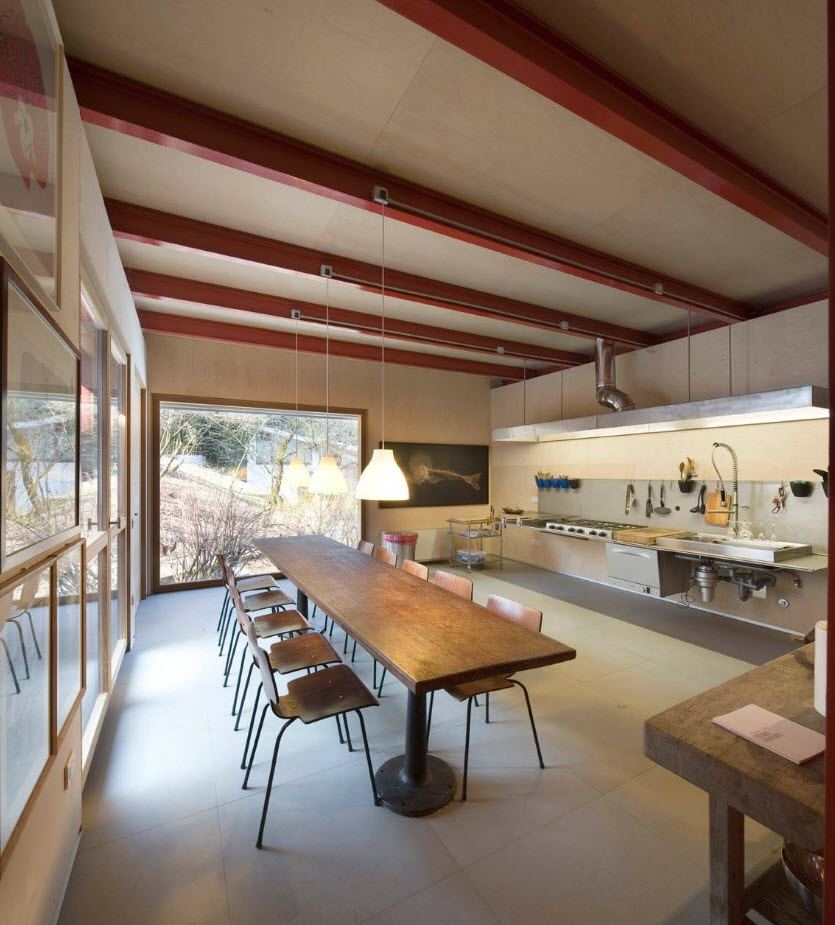 Dầm gỗ cho biết vị trí của nhà bếp và phòng khách
