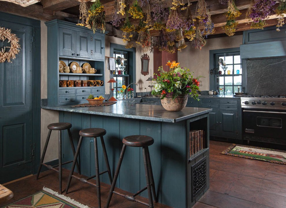 Nội thất nhà bếp kiểu nông thôn thường chứa các nhân tạo lão hóa, không chỉ các bề mặt gỗ mà còn cả các yếu tố nội thất