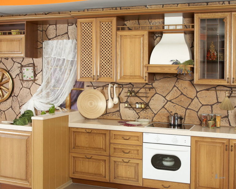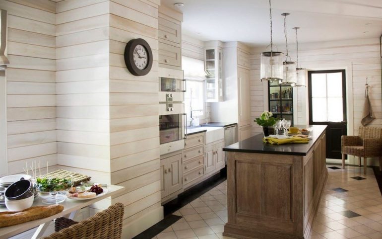 | Những bức tường | Trong quá trình sắp xếp nhà bếp, bạn không nên rời xa khái niệm chính của một ngôi nhà gỗ - sự thân thiện với môi trường, tự nhiên. Cách rẻ nhất, dễ nhất để trang trí các bức tường là vẽ tranh. Trong trường hợp này, giai đoạn chuẩn bị bề mặt sẽ đóng một vai trò rất lớn. Tường trước tiên phải được làm sạch, chà nhám, xử lý bằng tẩm chuyên dụng. Sơn phải được áp dụng trong một số lớp. Nếu bạn muốn giữ sự nhẹ nhõm, bạn có thể thay thế sơn bằng vecni. Khi sửa chữa một tòa nhà cũ, tốt nhất là trước tiên hãy khâu các bức tường bằng vách thạch cao, sau đó dán lên bằng giấy dán tường, phủ bằng gạch. Vách thạch cao cho phép bạn san phẳng bề mặt, che giấu khuyết điểm của nó, giúp ẩn thông tin liên lạc. Tấm gỗ MDF là một cách tốt khác để trang trí tường. Họ có một ngoại hình hấp dẫn, tương đối rẻ tiền. Bạn cũng có thể trang trí tường bằng dầm, đá tự nhiên.Phương pháp này phù hợp hơn cho các phòng cỡ trung bình. Thanh có thể cung cấp cách nhiệt tốt. |