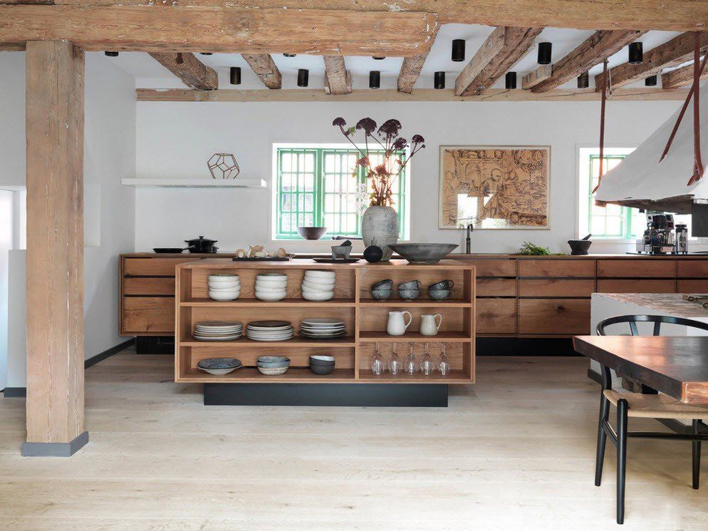 Một bộ gỗ tạo ra một bầu không khí ấm áp và giản dị trong nhà bếp