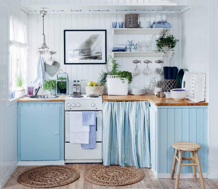 Sữa lý tưởng, màu vàng nhạt, màu kem. Màu sáng hơn có thể được sử dụng trong trang trí của tai nghe, cửa sổ mở. Rèm cửa có thể được chọn với in hoa. Dệt may nhà bếp nên tự nhiên.