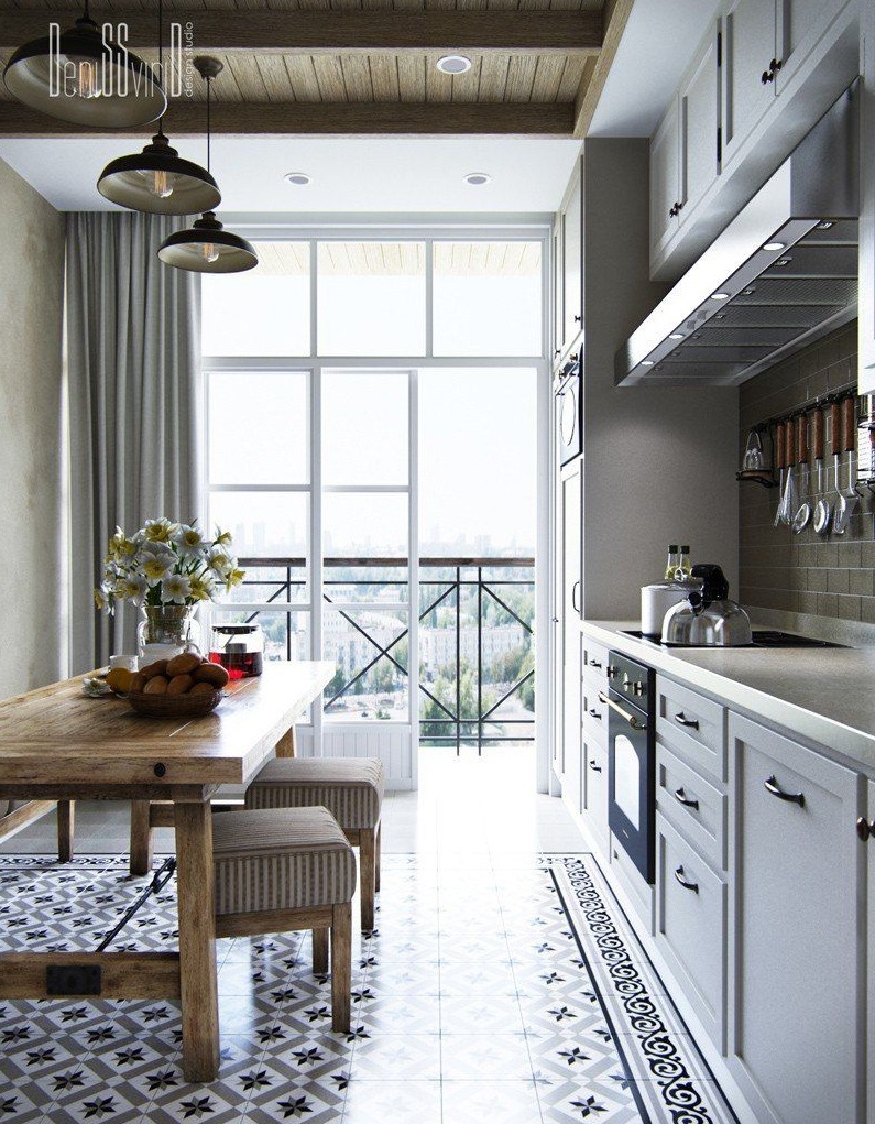 Một đặc điểm khác biệt của hướng này là sử dụng tối đa các vật liệu tự nhiên cả trong trang trí và lựa chọn đồ nội thất. Gỗ, đá - thứ nên tỏa ra sức sống, kết nối với thiên nhiên. Nhà bếp là một cổ điển hiện đại không cho phép nhiều nhựa, đồ gia dụng vụng về và tông màu hào nhoáng.