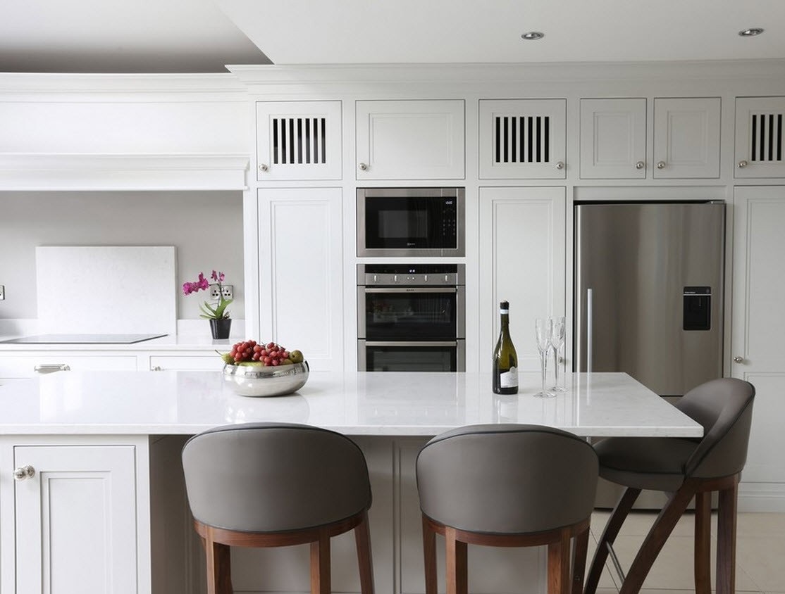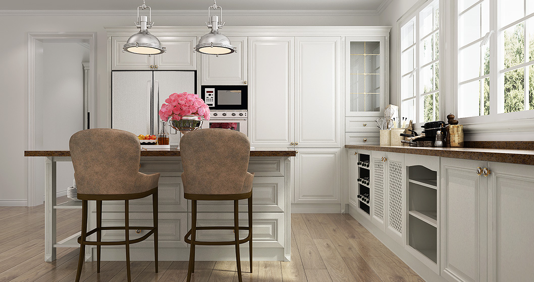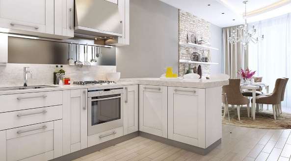 Lựa chọn vật liệu hoàn thiện cho nội thất nhà bếp màu trắng theo phong cách cổ điển hiện đại