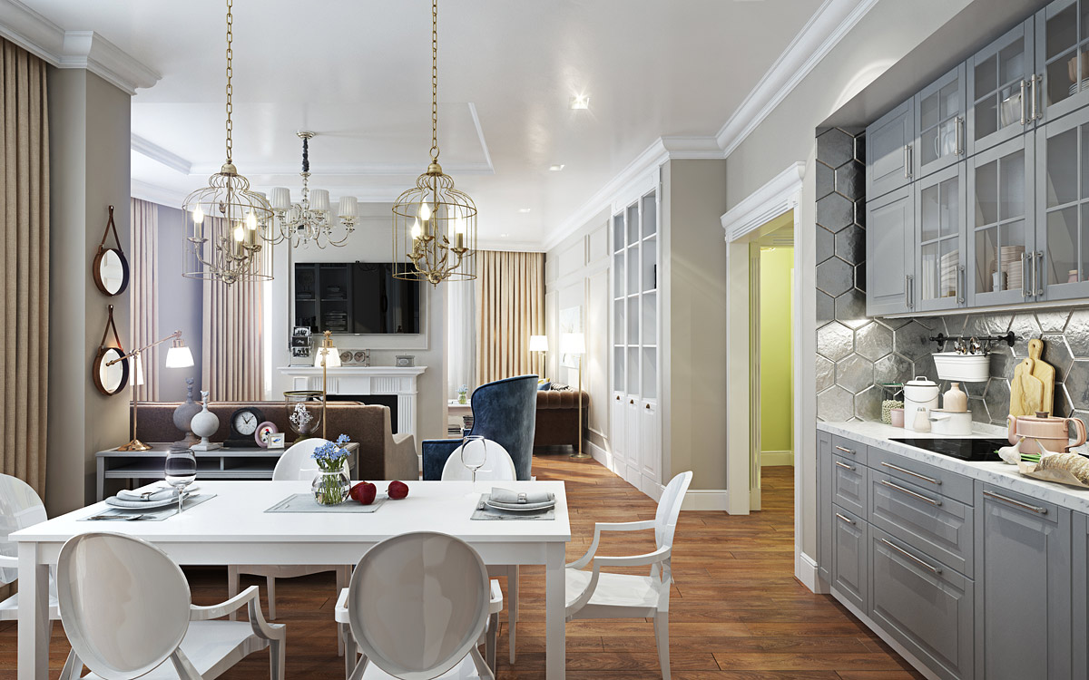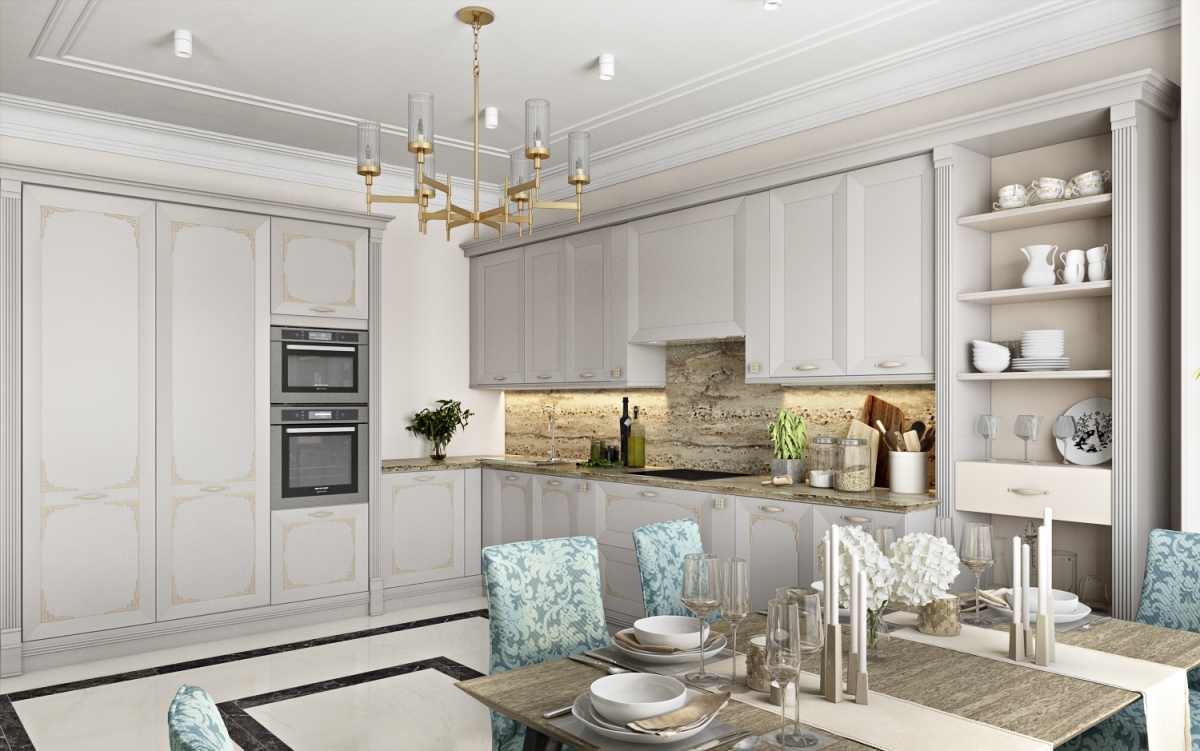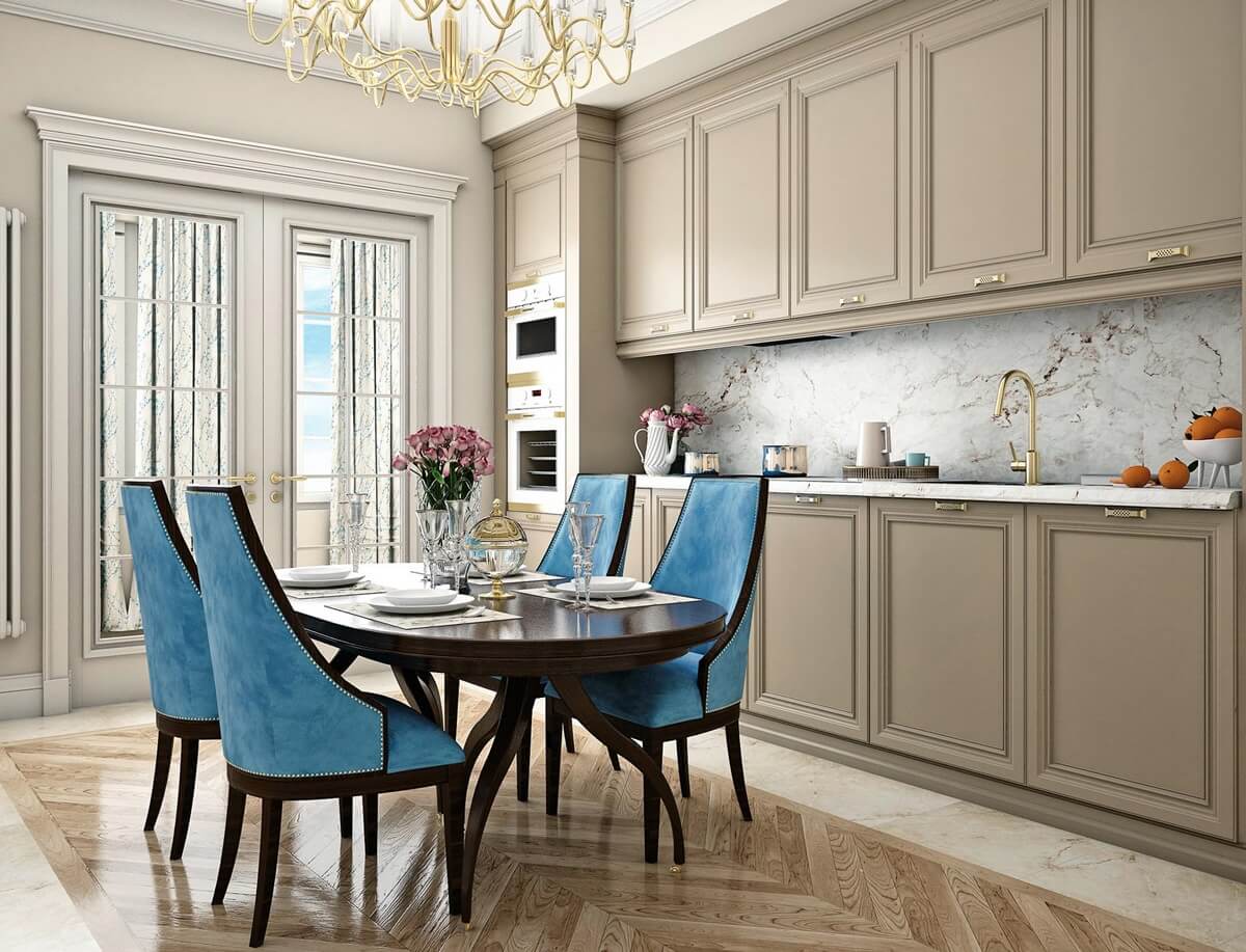 - Nội thất trong nhà bếp theo phong cách cổ điển hiện đại