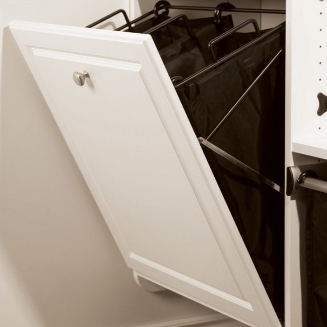 Ngoài ra, hệ thống gấp đặc biệt để lưu trữ có thể trở thành một cách tốt để thoát khỏi tình huống. Để hiện thực hóa ý tưởng này, bạn cần sửa khung kim loại trên bất kỳ cửa tủ trượt nào và lắp đặt một vài giỏ vải ở đó. Nó sẽ có thể lưu trữ quần áo bẩn trong đó cho đến khi giặt. Cài đặt khá đơn giản và thậm chí bạn có thể tự thực hiện các thao tác này.