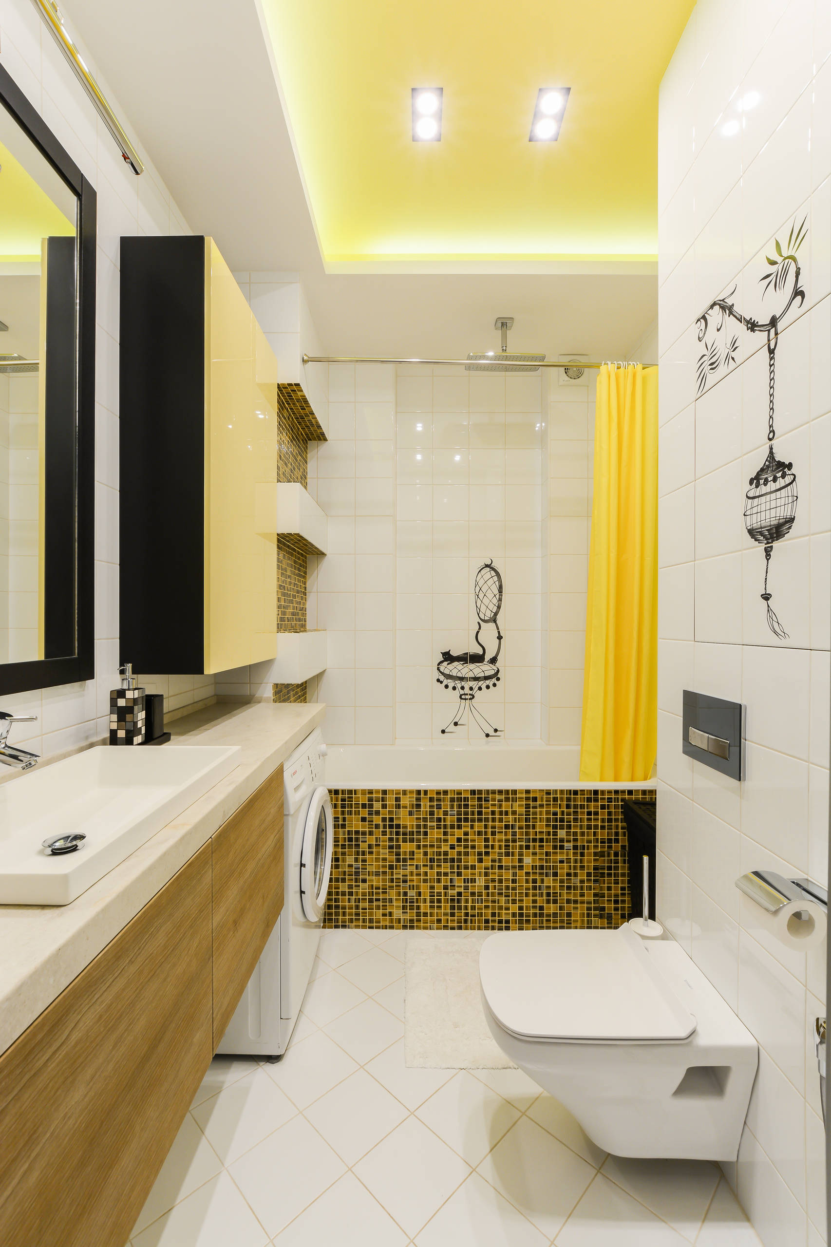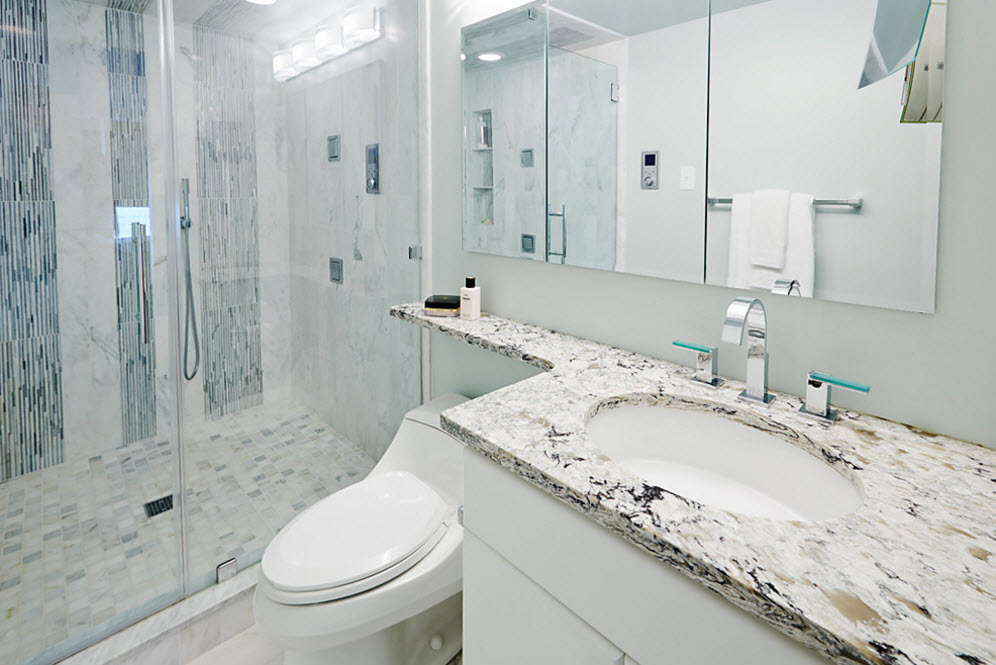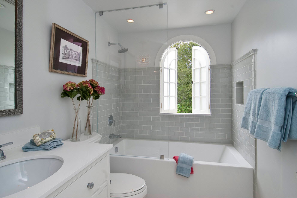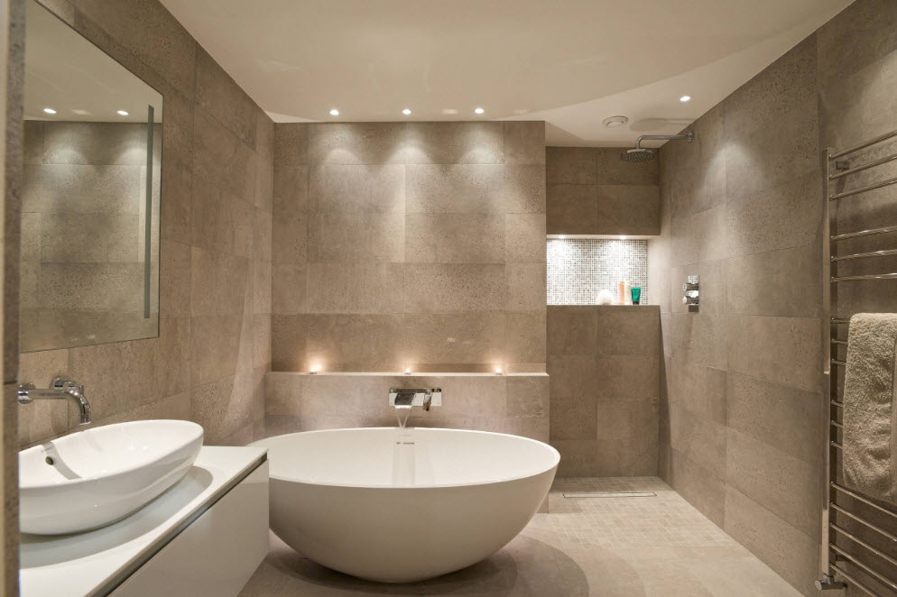 Vị trí lắp đặt của đồ đạc được chọn tùy thuộc vào mét của phòng tắm, chiều cao của trần nhà và sự hiện diện của các gờ hoặc vách ngăn