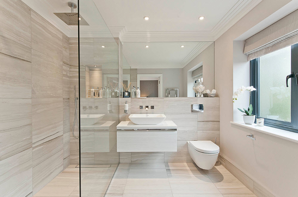 Phòng tắm rộng rãi có nhiều khả năng hơn. Bạn có thể kết hợp vòi hoa sen và bồn tắm rộng rãi, ngoài nhà vệ sinh, đặt một chậu vệ sinh và lắp đặt chậu rửa đôi, tùy thuộc vào sở thích và mong muốn của gia đình bạn.