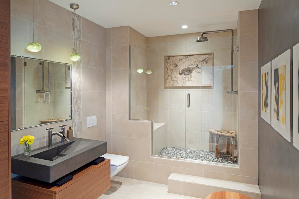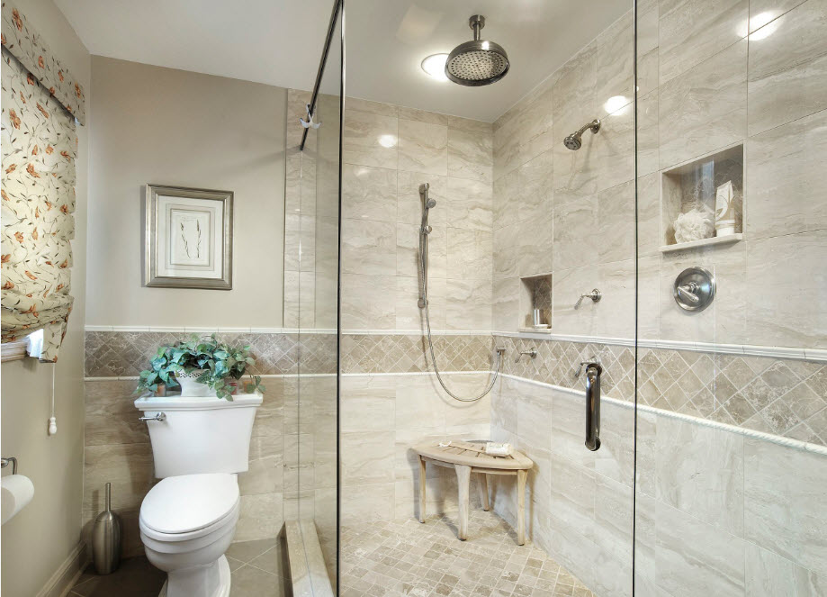 Đối với một phòng tắm nhỏ, một góc tắm, chiếm diện tích ít hơn đáng kể, là một giải pháp hợp lý.