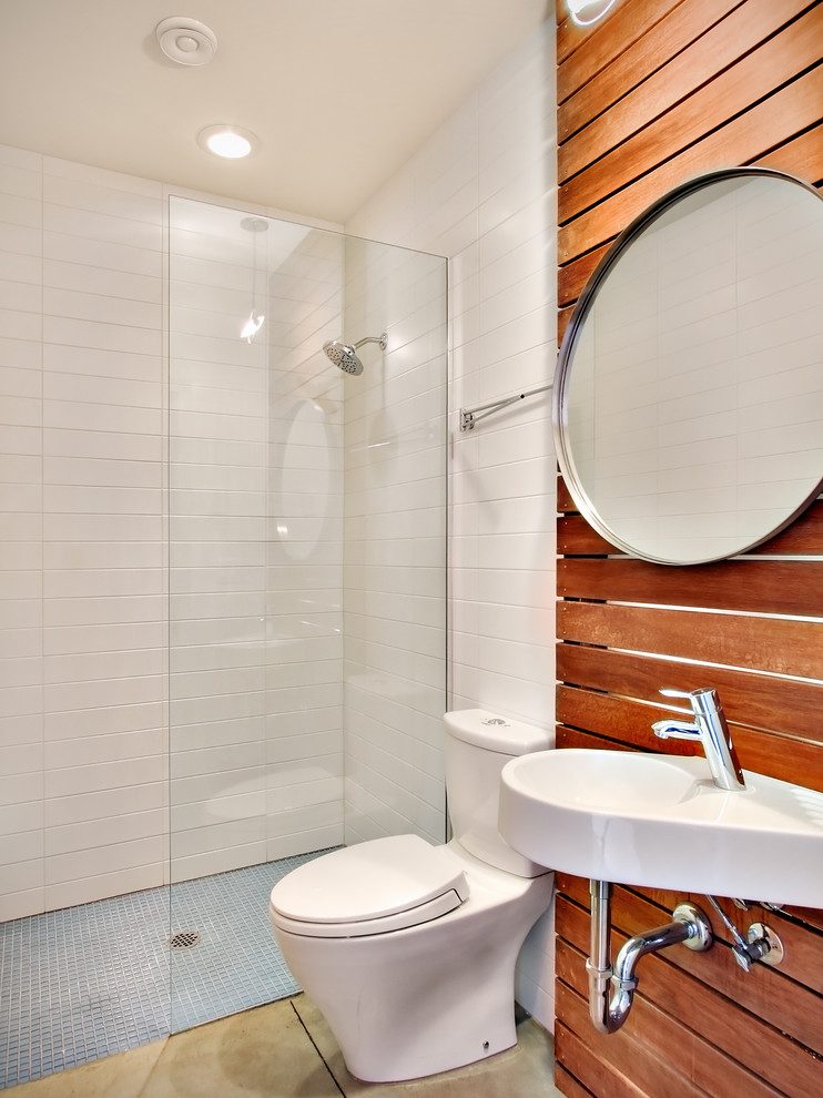 Phòng tắm nhỏ gọn với trang trí tường tối giản