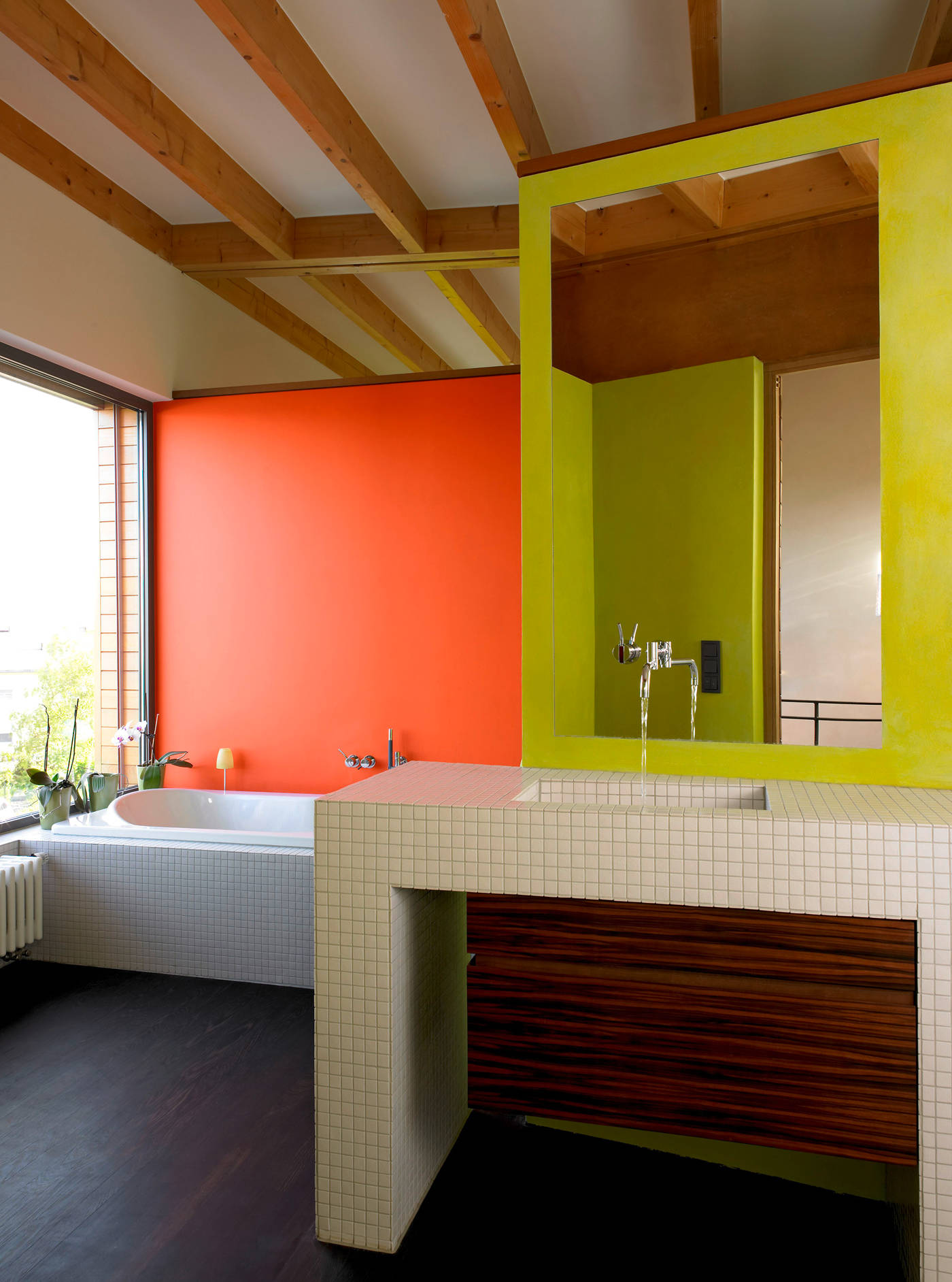 Sử dụng gạch trên tường, căn phòng có thể được chia thành các khu chức năng