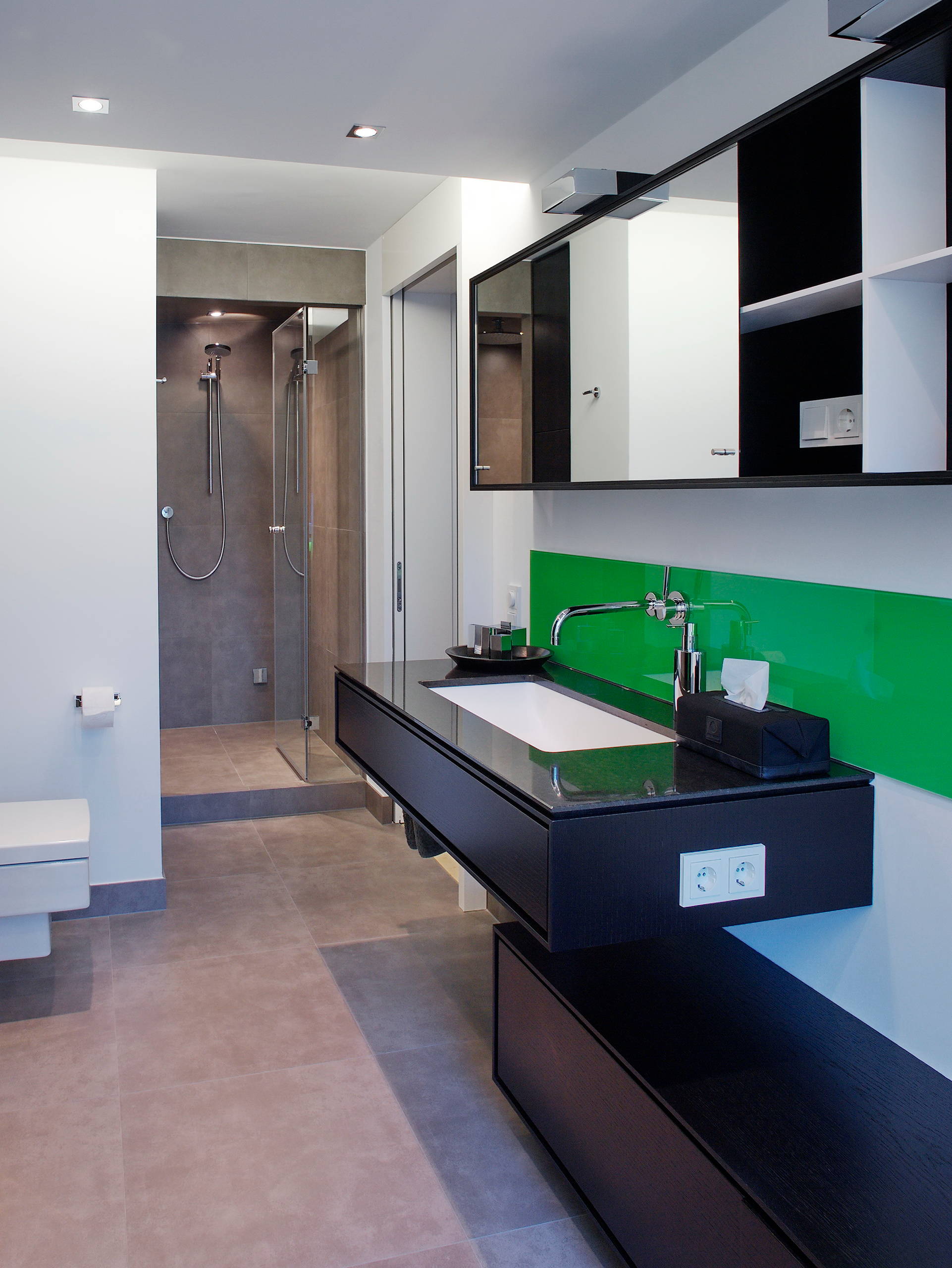 Trông thật tuyệt trong phòng tắm theo phong cách hiện đại với những đường nét rõ ràng và đúng tỷ lệ