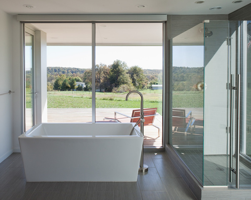 Phòng tắm đá granite trong phòng tắm rộng rãi theo phong cách tối giản