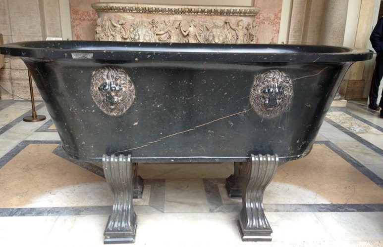 Một bồn tắm sang trọng được chạm khắc từ một khối đá cẩm thạch