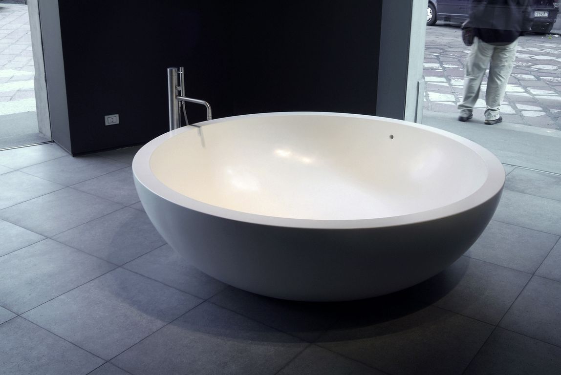 - Hình bầu dục. Tắm như vậy là thoải mái. Sự kết hợp hài hòa giữa chất liệu và hình thức làm cho nó trở nên hấp dẫn và sang trọng. Sử dụng thích hợp trong phòng lớn, lắp đặt bồn tắm trực tiếp ở giữa.