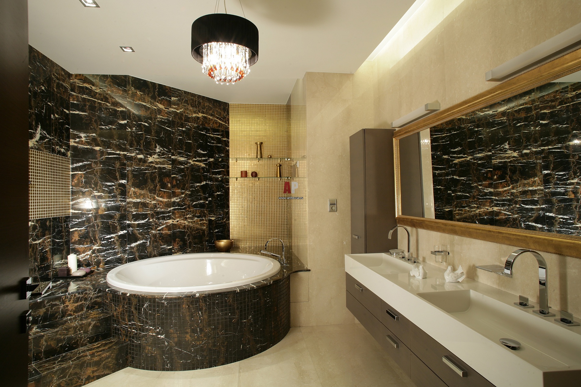 Đối với một thiết kế kiểu dáng đẹp, tấm ốp tường và sàn là thích hợp để mang cùng một vật liệu. Bạn không nên lo lắng về sức mạnh và độ kín với lựa chọn này, vì bồn tắm bằng đá cẩm thạch được tạo ra từ một khối đá rắn. Trang trí nội thất có thể là:
