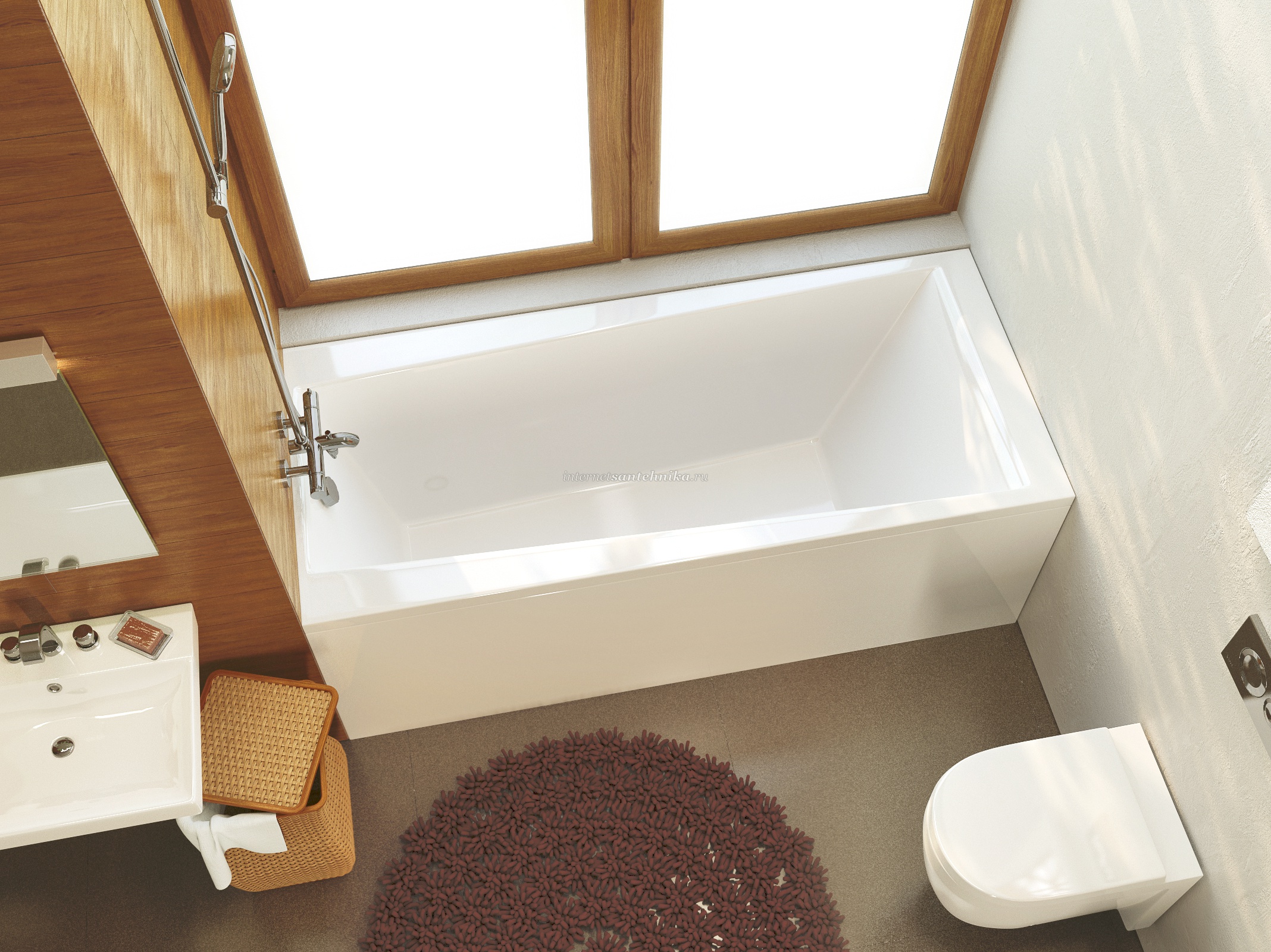 - Hình dạng góc cạnh. Một bồn tắm như vậy có thể được cài đặt trong một căn phòng với một hình cầu nhỏ. Nó tiết kiệm không gian mà không mất chức năng.