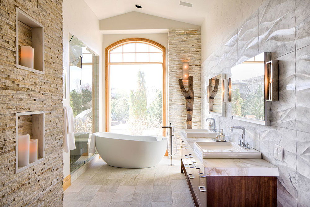 Sử dụng đá để trang trí tường để làm nổi bật bồn tắm